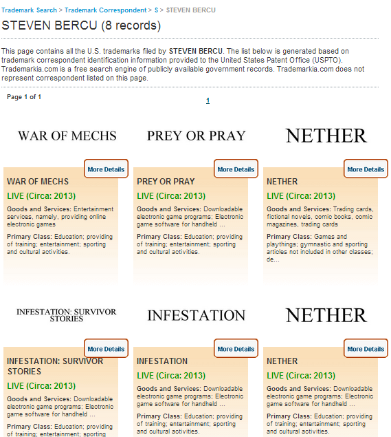 Auf folgender Seite könnt ihr euch selbst den Markenbesitz von Nether und Infestation genauer ansehen: klick mich