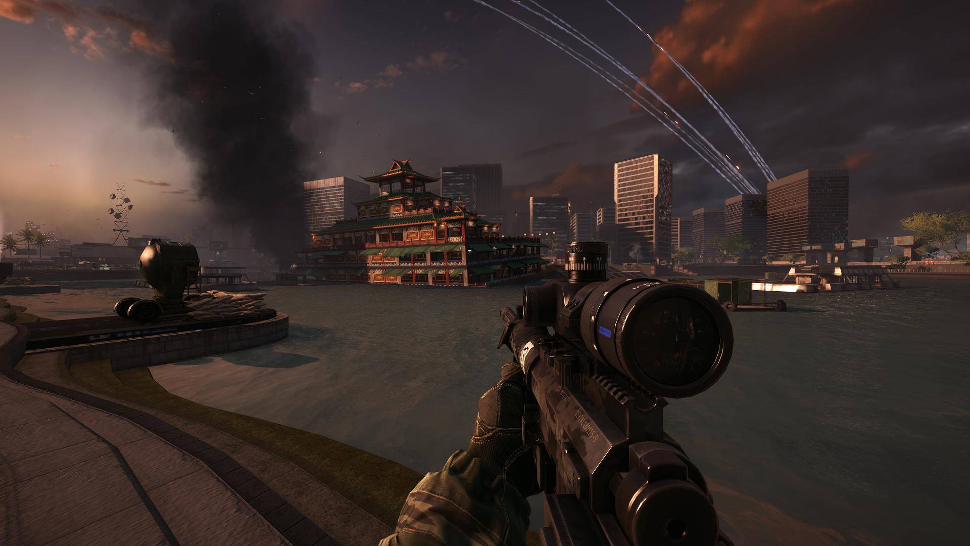 In den Maps von Dragon’s Teeth fällt sofort auf, dass der Fokus ganz klar auf Infanterie gelegt worden ist. Es gibt kaum Fahrzeuge und schnell wird klar, dass diese in den dicht besiedelten Gebieten der asiatischen Städte auch eher fehl am Platz sind. Die Death-Zonen sind für den Little-Bird teilweise so eng gelegt, sodass man über diverse Hochhäuser gar nicht erst fliegen kann. Bei einer Eroberung liegen die einzelnen Flaggen-Punkte näher beisammen, um nicht allzu vielen Frust beim Laufen ernten zu müssen. Bei einer Vorherrschaft muss man beispielsweise auf der Map Versunkener Drache schon sehr taktisch vorgehen, um die Flaggenpunkte halten zu können, da der Zugang zum Restaurant sehr schwer werden kann. Bei dieser Erweiterung hat man sich in manchen Maps auch wieder mehr Gedanken zu Levolution gemacht. Viele Gebäude lassen sich zum Einsturz bringen und einige Maps haben zusätzlich noch spezielle Levolution Features.
